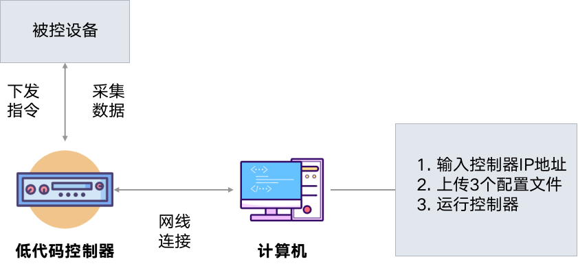 2. 启动使用:将低代码控制器插上电源,通过网线将低代码控制器连接电脑,打开网页输入控制器的IP地址。