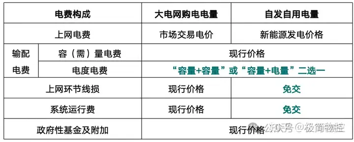 在具体的电费优惠方面,主要变化为“一变两免”。“一变”是:输配电费,模式1是现行的容量电费+折算的容量电费,即电量电费从“流量费”变为“包月费”;模式2是现行的容量电费+电量电费,其中自发自用电量也要缴纳电量电费。“两免”是:自发自用电量免缴系统运行费、上网环节线损费。